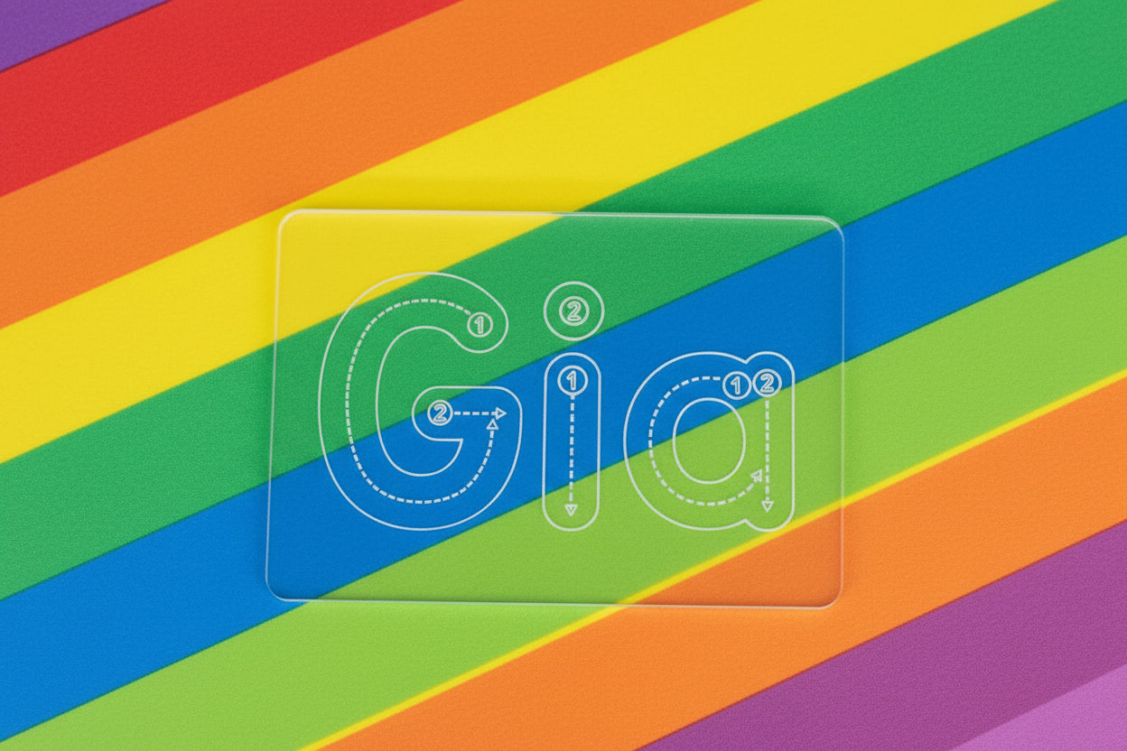 Make learning your child's name fun, meaningful, and mess-free with this custom acrylic tracing card-a keepsake that grows with them!