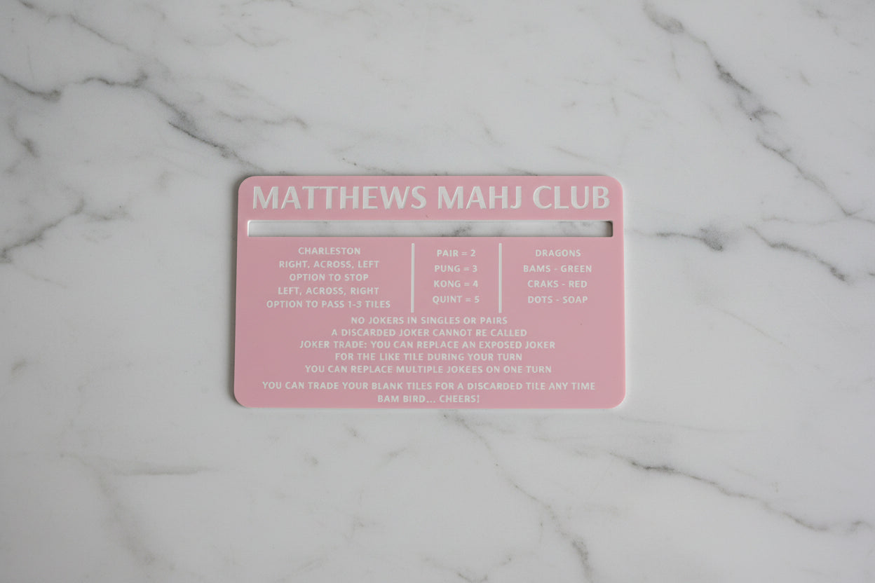 Optional personalization makes your set even more meaningful and adds a special touch to your mahjong table.