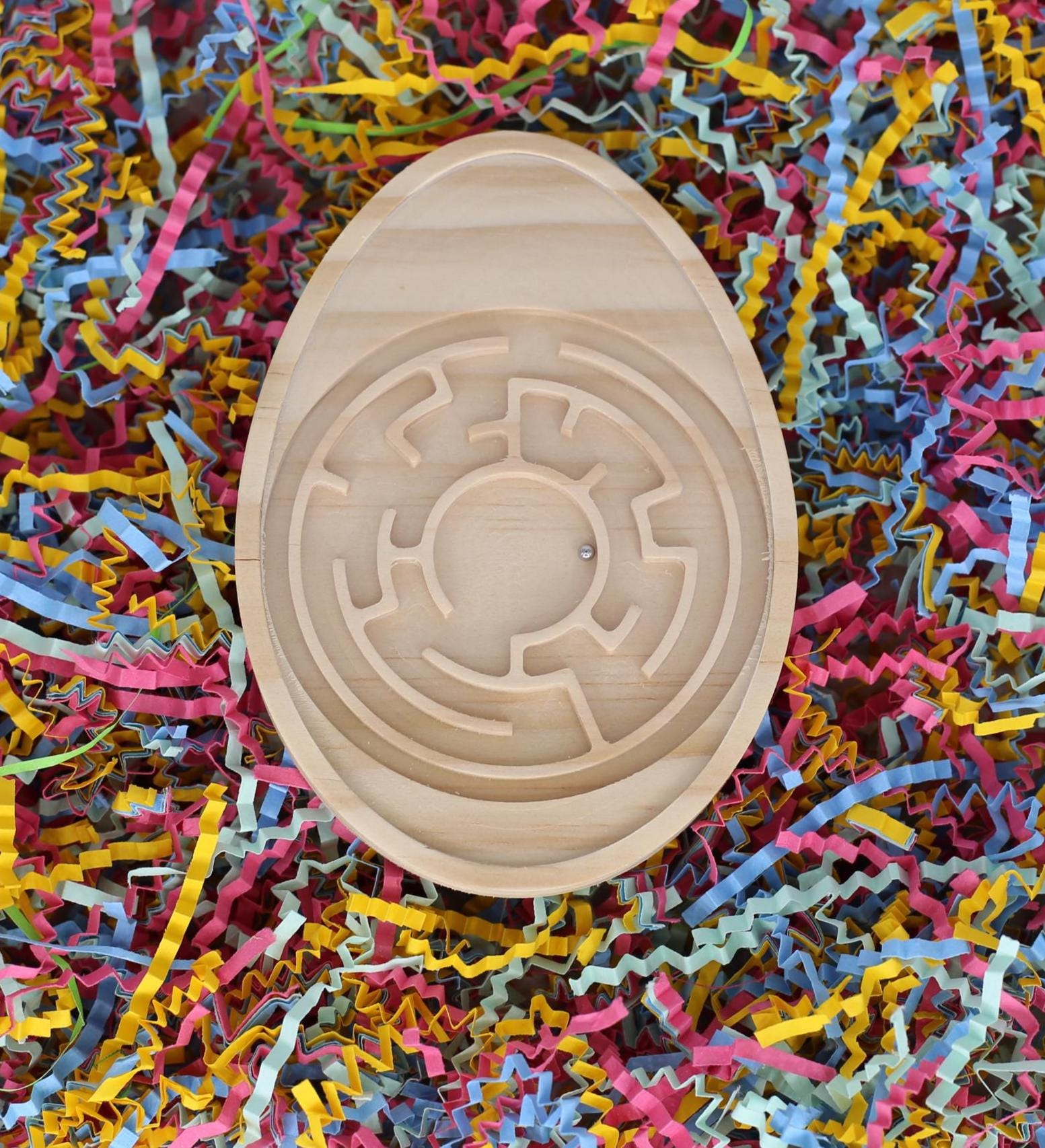 🐣 Celebrate Easter with hands-on fun and timeless charm! Our Easter Egg Maze is crafted from smooth pine wood, topped with clear acrylic, and features a steel ball bearing that you guide from the outer edge to the center by gently tilting and turning the maze.