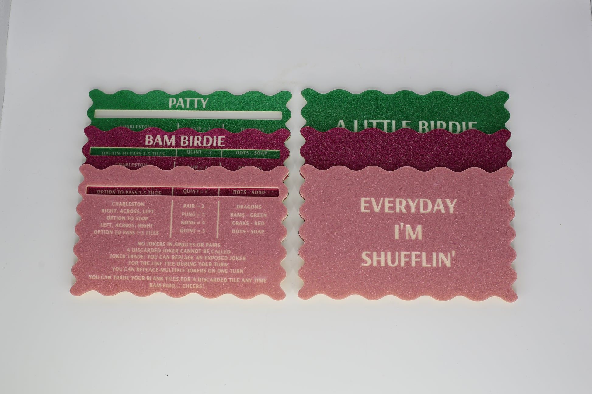 Whether you're hosting a themed party, learning mahjong together, or creating a new weekly tradition, this Mahjong Line Reader & Tile Shuffler Set makes every game smoother, easier, and more fun.