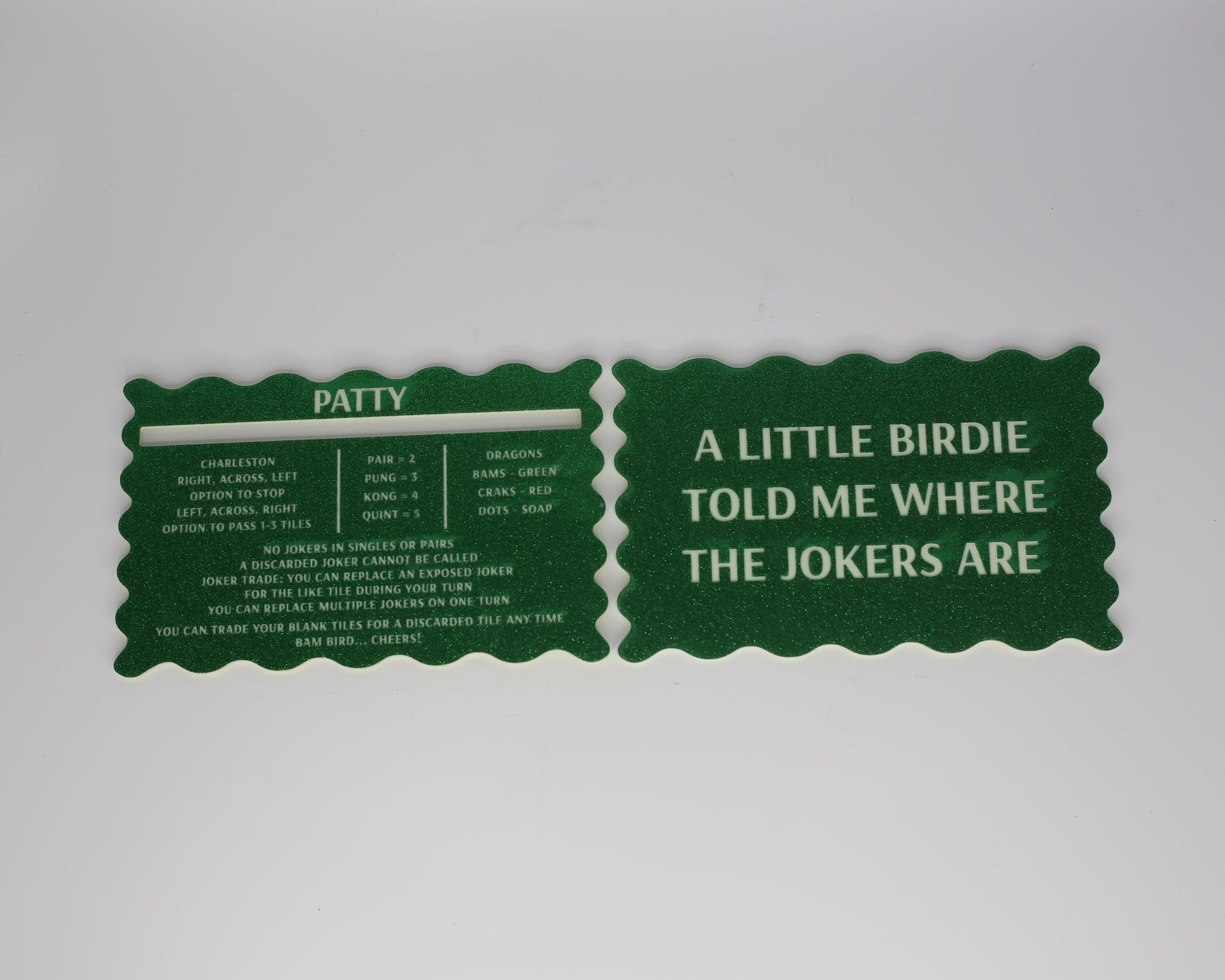 Optional personalization makes your set even more meaningful and adds a special touch to your mahjong table.