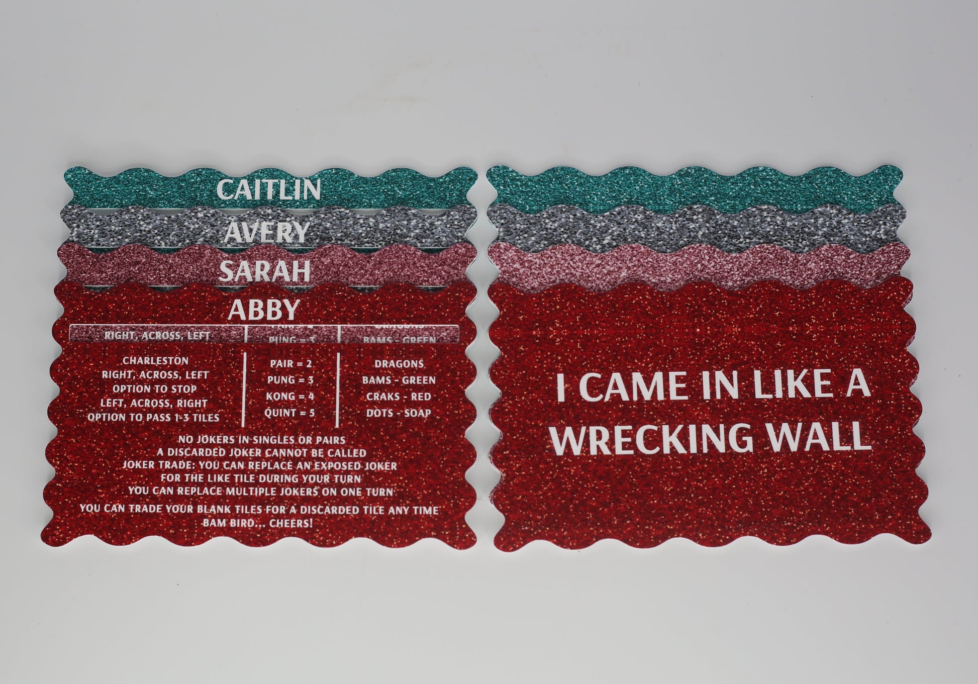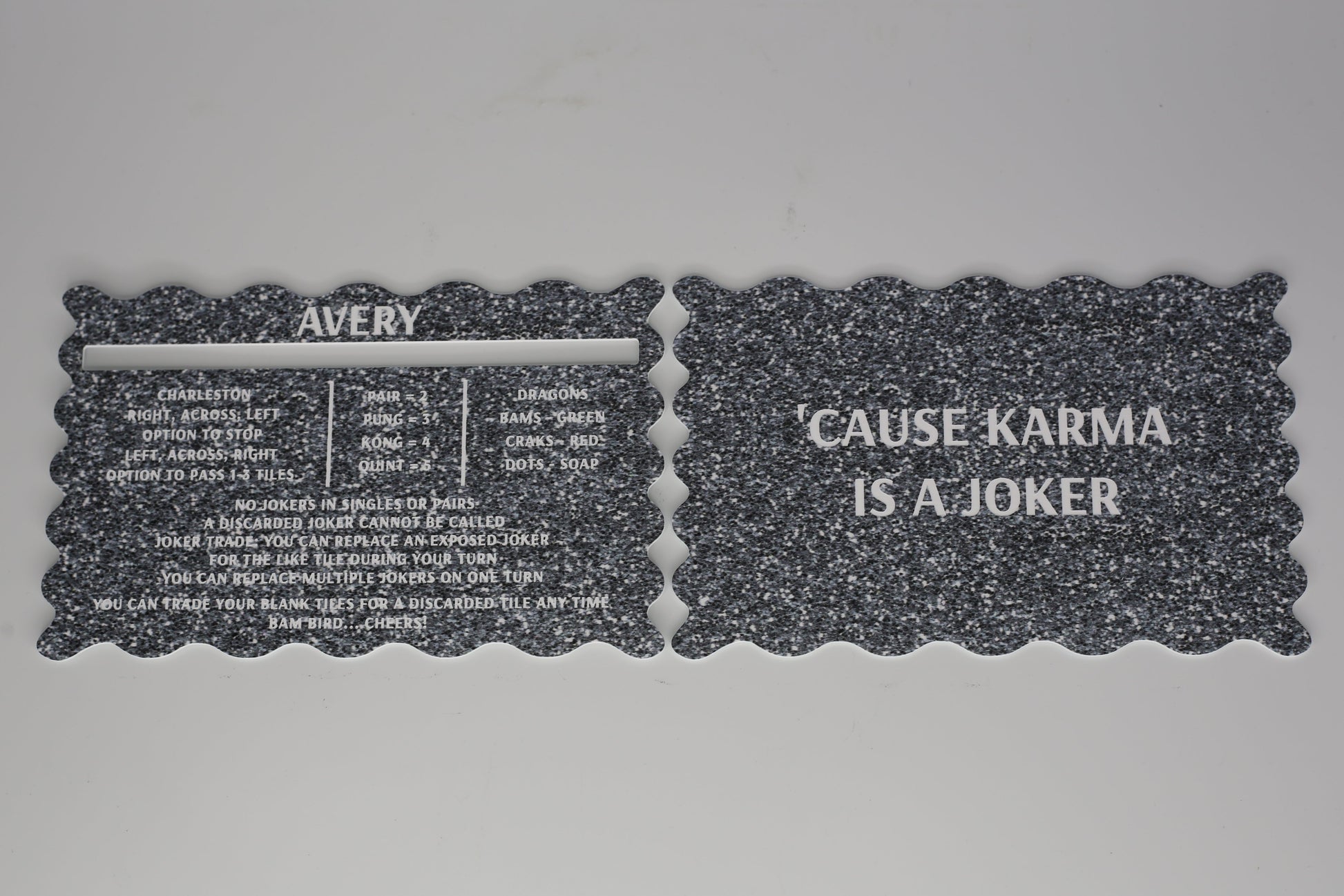 Optional personalization makes your set even more meaningful and adds a special touch to your mahjong table.